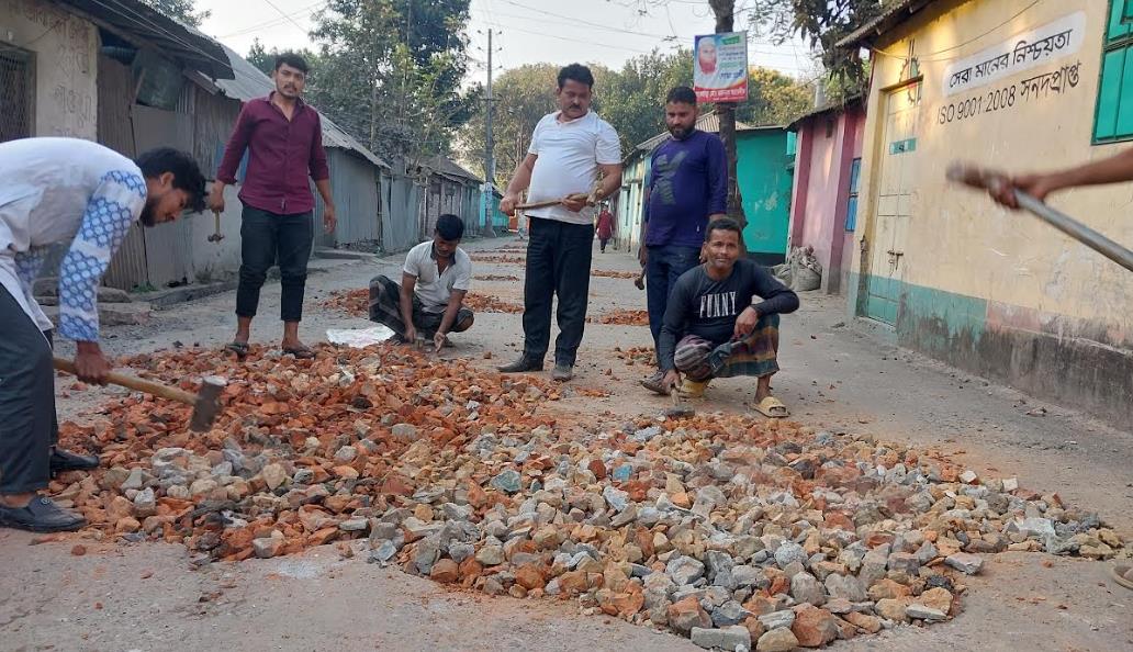 সৈয়দপুরে আ.লীগের এক নেতার ব্যক্তি উদ্যোগে সড়ক সংস্কার কাজ শুরু