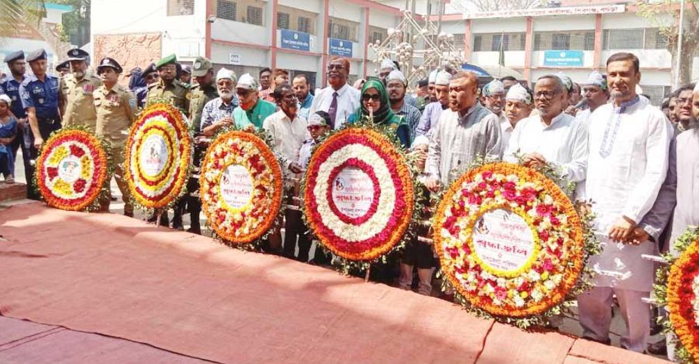 রবিবার দিবসটি উপলক্ষে উপজেলা প্রশাসনের আয়োজনে উপজেলা পরিষদ চত্বরে বঙ্গবন্ধুর প্রতিকৃতিতে শ্রদ্ধাঞ্জলী অর্পন শেষে এক বর্ণাঢ্য র্যালী শেষে উপজেলা শহীদ বীর মুক্তিযোদ্ধা হাফিজার রহমান মিলনায়তনে আলোচনা সভা, সাংস্কৃতিক অনুষ্ঠান ও পুরস্কার বিতরণী অনুষ্ঠানে উপজেলা নির্বাহী তাহমিনা আক্তার এর সভাপতিত্বে বক্তব্য উপজেলা পরিষদ চেয়ারম্যান ফিরোজ আহমেদ রিজু, সহকারি কমিশনার (ভূমি) মোঃ তাসনিমুজ্জামান, উপজেলা আওয়ামী লীগ আলহাজ্ব মোস্তাফিজার রহমান মোস্তা, নব-নির্বাচিত মেয়র তৌহিদুর রহমান মানিক, উপজেলা স্বাস্থ্য ও পরিবার পরিকল্পনা কর্মকর্তা ডা. আশরাফুল ইসলাম, শিবগঞ্জ থানা অফিসার ইনচার্জ আব্দুর রউফ, প্রকল্প বাস্তবায়ন কর্মকর্তা জহিরুল ইসলাম।