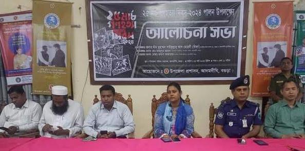 বগুড়ার আদমদীঘি উপজেলা প্রশাসনের আয়োজনে গণহত্যা দিবস পালিত হয়েছে। এলক্ষে সোমবার উপজেলা পরিষদ হলরুমে সকাল ১১টায় এক আলোচনা সভা উপজেলা নির্বাহী অফিসার রুমানা আফরোজের সভাপতিত্বে অনুষ্ঠিত হয়।