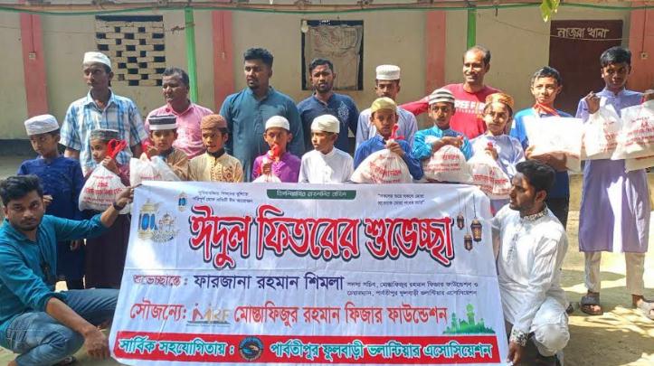 জানা গেছে,সাবেক মন্ত্রী বীরমুক্তিযোদ্ধা জাতীয় সংসদের দিনাজপুর-৫ পার্বতীপুর-ফুলবাড়ী আসনের ৮ বার নির্বাচিত এমপি এডভোকেট মোস্তাফিজুর রহমান ফিজার এর নামে প্রতিষ্ঠিত "মোস্তাফিজুর রহমান ফিজার ফাউন্ডেশন" এর সদস্য সচিব ও পার্বতীপুর-ফুলবাড়ী ভলান্টিয়ার এসোসিয়েশন এর চেয়ারম্যান এমপি কন্যা ফারজানা রহমান শিমলার সৌজন্যে পার্বতীপুর ও ফুলবাড়ীর সকল ইউনিয়নের এতিম খানায় এবং পার্বতীপুর ও ফুলবাড়ী পৌরসভায় হতদরিদ্র ও শ্রমিকদের মাঝে ১১ শ' প্যাকেট সেমাই চিনি ঈদ উপহার হিসাবে বিতরন করা হয়েছে। এ ছাড়াও হতদরিদ্রের মাঝে শাড়ী ও লুঙ্গি বিতরণ করা হয়।