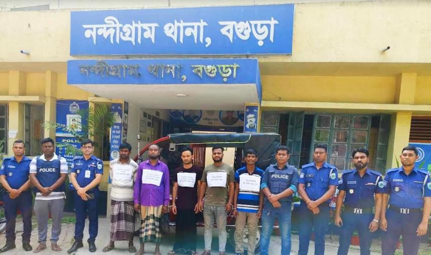 বৃহস্পতিবার রাত থেকে শুক্রবার ভোর পর্যন্ত বগুড়া সদর, কাহালু, শিবগঞ্জ, জয়পুরহাট জেলার কালাই উপজেলা ও গাইবান্ধা জেলার ফুলছড়ি উপজেলার বিভিন্ন এলাকা হতে ইজিবাইক ছিনতাইয়ের সাথে জড়িত এই ৫ জনকে গ্রেপ্তার করতে সক্ষম হয় নন্দীগ্রাম থানা পুলিশের আভিযানিক দল।