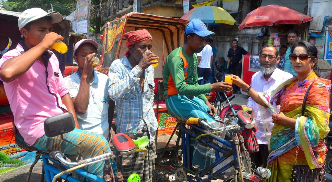 বগুড়ায় শ্রমজীবী মানুষদের তৃষ্ণা মেটাতে শরবত পান করালেন স্বপ্না