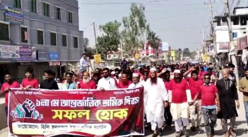 বুধবার (১ মে) সকাল ৯টায় হিলি স্থলবন্দর এর চারমাথা মোড়ে দিবসটি পালন উপলক্ষ্যে জাতীয় সংগীত, দলীয় ও জাতীয় পতাকা উত্তোলন এর মাধ্যমে দিবসটির শুভ সূচনা করা হয়। এরপর বর্ণাঢ্য র্র্যালী স্থলবন্দরের বিভিন্ন সড়ক প্রদক্ষিণ শেষে একই স্থানে এসে শেষ হয়।
