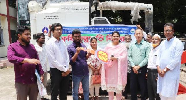 দুপুরে উপজেলা কৃষি অফিস চত্বরে উপজেলার তারাপুর গ্রামের স্মার্ট কৃষি উদ্যোক্তা আশিকুজ্জামানকে ভুর্তকিমূল্য ৩০লাখ ৭০হাজার টাকায় হারভেস্টার প্রদান করা হয়। এসময় উপস্থিত ছিলেন,উপজেলা নির্বাহী অফিসার ও কৃষি পুর্নবাসন কমিটির সভাপতি রুমানা আফরোজ,কৃষি অফিসার কৃষিবিদ মিঠু চন্দ্র অধিকারী,সিনিয়র মৎস্য অফিসার সুজয় পাল,অতিরিক্ত কৃষি অফিসার দিপ্তী রানী রায়,তথ্যআপা শিউলী বেগম,বীরমুক্তিযোদ্ধা আবির উদ্দীন খান,মৎস্য উৎপাদনকারী সমবায় সমিতির সভাপতি রফিকুল ইসলাম,কৃষি অফিসের এসএপিপিও সাইফুল ইসলাম,উপসহকারী ফরহাদ হোসেন,ব্লক সংুশ্লষ্ট উপসহকারী শামছুল কুদ্দুস,ম্যাকডোলান্ড কোম্পানীর মার্কেটিং অফিসার আব্দুল কুদ্দুস প্রমুখ।