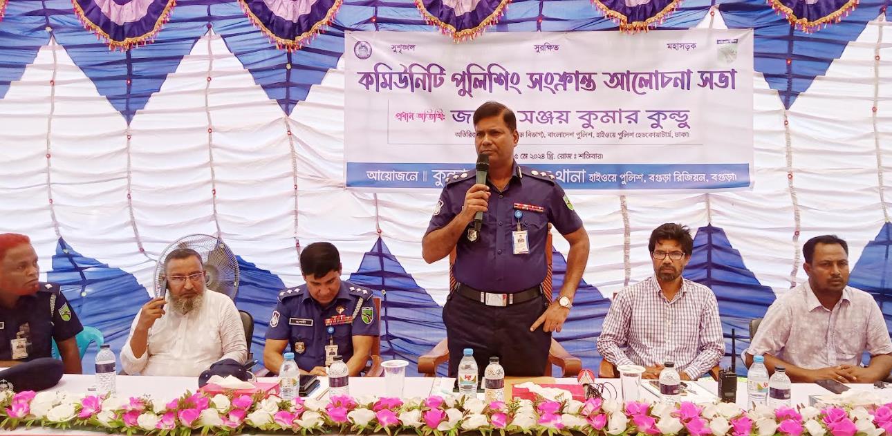 শনিবার ২৫শে মে বগুড়া রিজিয়নের কুন্দারহাট হাইওয়ে থানা পুলিশ এর আয়োজনে থানা চত্বরে সকাল ১০টায় কমিউনিটি পুলিশিং সংক্রান্ত আলোচনা সভায় কুন্দারহাট হাইওয়ে থানার ভারপ্রাপ্ত কর্মকর্তা (ওসি) আব্বাস আলীর সভাপতিত্বে প্রধান অতিথির বক্তব্য রাখেন হাইওয়ে পুলিশ হেডকোয়ার্টার্স এর অতিরিক্ত ডিআইজি (পশ্চিম বিভাগ) ঢাকা সঞ্জয় কুমার কুন্ডু। এসময় আরোও বক্তব্য রাখেন, হাইওয়ে সার্কেল বগুড়া রিজিয়ন এর সহকারী পুলিশ সুপার আলী আহম্মেদ হাশমী, নন্দীগ্রাম পল্লী বিদ্যুৎ সমিতি-১ এর সাবেক ডাইরেক্টর ও উপজেলা আওয়ামী লীগ নেতা নজিবুল্লাহ মজনু মন্ডল, কুন্দারহাট হাইওয়ে কমিউনিটি পুলিশিং কমিটির সভাপতি এম আর জামান রাসেল, কুন্দারহাট মোটর শ্রমিক ইউনিয়নের সাধারণ সম্পাদক মুক্তার হোসেন প্রমুখ। প্রধান অতিথির বক্তব্য সঞ্জয় কুমার কুন্ডু বলেন, হাইওয়ে পুলিশের কাজ সবসময় মহাসড়ক কেন্দ্র্রীক। মহাসড়কে সকল ধরণের, অপরাধ, দূর্নীতি, চাঁদাবাজি, ডাকাতি বন্ধে কঠোর অবস্থানে থাকে হাইওয়ে পুলিশ।