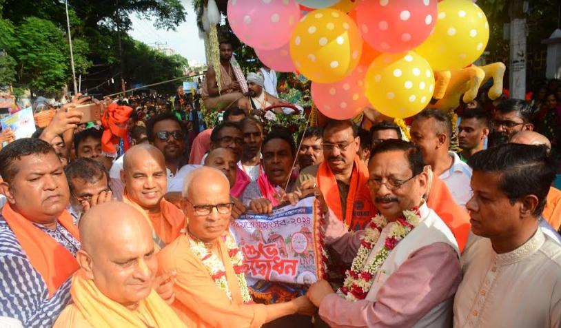 আলোচনা পর্ব শেষে আমন্ত্রিত অতিথিরা নিজেদের হাতে রথের রজ্জু টেনে ও বেলুন উড়িয়ে শ্রী শ্রী জগন্নাথ দেবের রথযাত্রা উৎসবের শুভ উদ্বোধন করেন। এরপর ভক্ত-পূণ্যার্থীরা রথ টেনে নগর বিভিন্ন গুরুত্বপূর্ণ সড়ক প্রদক্ষিণ করেন। ভক্তরা বিভিন্ন ধরনের ব্যানার, ফেস্টুন, প্ল্যাকার্ড, পৌরাণিক সাজ ও বাদ্যযন্ত্রসহকারে রথের শোভাযাত্রায় অংশগ্রহণ করেন।