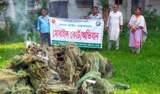 রাণীনগরে নিষিদ্ধ রিংজাল ভস্মিভূত