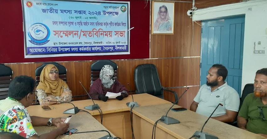 মঙ্গলবার (৩০ জুলাই) বেলা ১১টায় সৈয়দপুর সিনিয়র উপজেলা মৎস্য কর্মকর্তার কার্যালয় উপজেলা পরিষদ হল রুমে ওই সভার আয়োজন করে। মতবিনিময় সভায় সভাপতিত্ব করেন ও স্বাগত বক্তব্য দেন সৈয়দপুর সিনিয়র উপজেলা মৎস্য অফিসার মোছা. মোস্তারিনা আফরোজ।