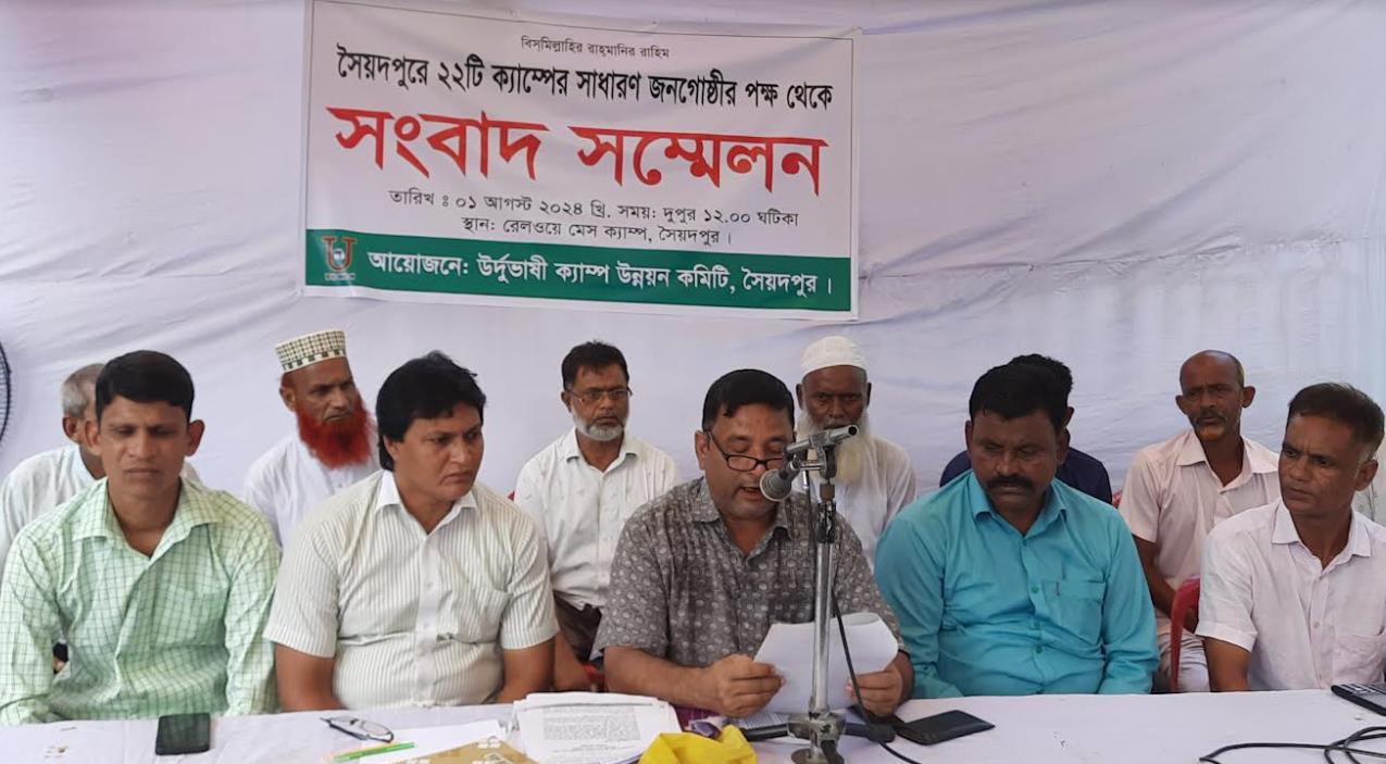 এতে লিখিত বক্তব্য পাঠ করেন সৈয়দপুর উর্দূভাষী ক্যাম্প উন্নয়ন কমিটির সভাপতি মো. মাজিদ ইকবাল। সংবাদ সম্মেলনে লিখিত বক্তব্যে বলা হয়, সৈয়দপুরে ২২টি আটকেপড়া উর্দূভাষী ক্যাম্পের কথা বলা হলেও বাস্তবে এখানে ছোট বড় মিলে ২৬টি ক্যাম্প রয়েছে। এ সব ক্যাম্পে ৪ হাজার ৬৭০টি পরিবার বসবাস করছে। লোক সংখ্যা আনুমানিক ২০ হাজার। গত ২০০৮ সালে উর্দূভাষীরা ভোটাধিকার পান। সেই থেকে তারা যে কোন নির্বাচনে আওয়ামী লীগের প্রার্থীর পক্ষে ভোটাধিকার প্রয়োগ করে আসছেন। অনেক উর্দূভাষী ক্যাম্পবাসী সরাসরি আওয়ামী লীগের রাজনীতির সঙ্গে ওতোপ্রোতভাবে জড়িত হয়ে পড়েছেন।