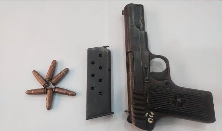 নীলফামারীর সৈয়দপুরে ছিনতাই হওয়ার ১৫ দিন পর পুলিশের পিস্তল ও ছয় রাউন্ড গুলি উদ্ধার করা হয়েছে। গত শুক্রবার (২ আগস্ট) রাত নয়টায় শহরের উপকন্ঠে কুন্দল পশ্চিমপাড়ার একটি পরিত্যক্ত সংলগ্ন পাকা দেওয়ালের সামনে রাস্তার পাশে ঝোঁপজঙ্গল থেকে ওই পিস্তল ও ম্যাগজিনসহ ছয় রাউন্ড গুলি উদ্ধার করেছে থানা পুলিশ।