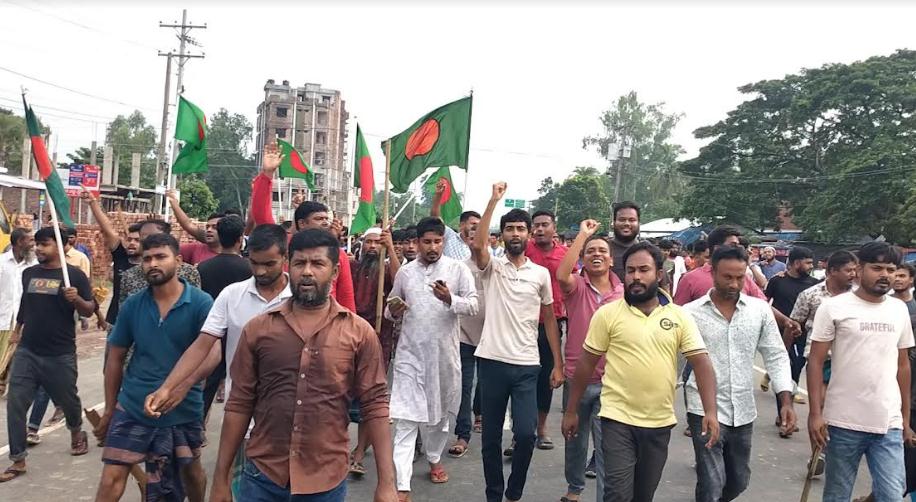 আনন্দ মিছিলে আসা জনতা বাসস্ট্যান্ড এলাকাসহ বিভিন্ন স্থানে টায়ার জালিয়ে অগ্নিসংযোগ করেন। ছাত্র-জনতা বিজয় মিছিল থেকে শেখ হাসিনার পালানো নিয়ে বিভিন্ন স্লোগান দিয়ে পুরো এলাকা মুখরিত করে তোলে।