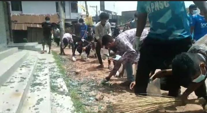 হিলি শহরকে পরিষ্কার করতে রাস্তায় ছাত্র সমাজ