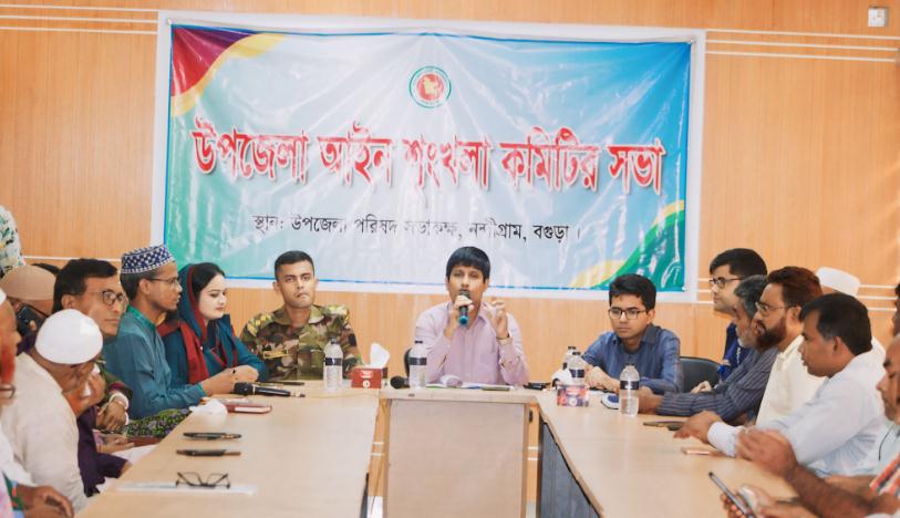 দেশের চলমান উদ্ভূত পরিস্থিতি নিরসনে শান্তি-শৃঙ্খলা বজায় রাখার লক্ষে বগুড়ার নন্দীগ্রামে আইন-শৃঙ্খলা সংক্রান্ত বিশেষ সভা অনুষ্ঠিত হয়েছে।