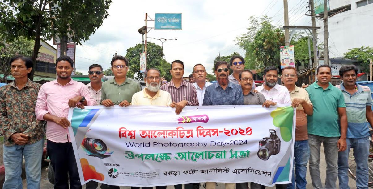 বগুড়ায় বিশ্ব আলোকচিত্র দিবস উপলক্ষে বগুড়া ফটো জার্নালিস্ট এসোসিয়েশন'র (বিপিজেএ) আয়োজনে আলোচনা সভা ও বর্ণাঢ্য শোভাযাত্রার মধ্যে দিয়ে পালন করা হয়েছে। সোমবার বেলা সাড়ে ১১টায় শহরের স্টেশন রোডস্থ বগুড়া ফটো জার্নালিস্ট এসোসিয়েশন কার্যালয়ে সহ-সভাপতি আব্দুল লতিফের সভাপতিত্বে ও সাধারণ সম্পাদক কাওছার উল্লাহ আরিফের সঞ্চালনায় আলোচনা সভায় প্রধান আলোচক হিসেবে বক্তব্য রাখেন সংগঠনটির সাবেক সভাপতি সিনিয়র ফটো সাংবাদিক শফিকুল ইসলাম শফিক। এরপর বগুড়া প্রেসক্লাব চত্বর থেকে একটি বর্ণাঢ্য শোভাযাত্রা বের হয়।