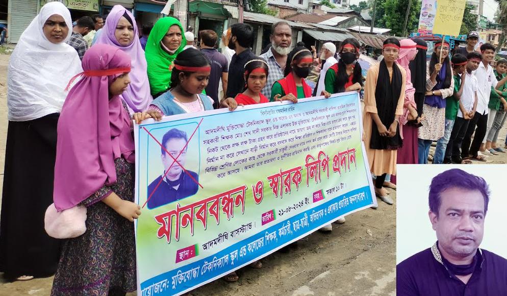 আদমদীঘিতে অধ্যক্ষের বিরুদ্ধে মানববন্ধন, স্মারকলিপি প্রদান