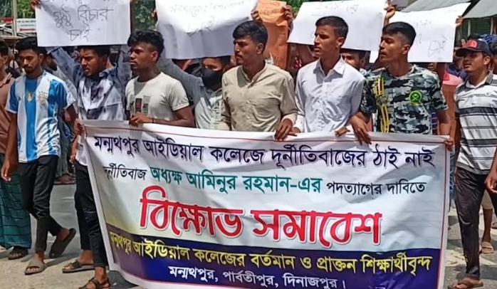 পার্বতীপুরে শিক্ষার্থীদের আন্দোলনের মুখে মন্মথপুর আইডিয়াল ডিগ্রি কলেজের অধ্যক্ষের পদত্যাগ