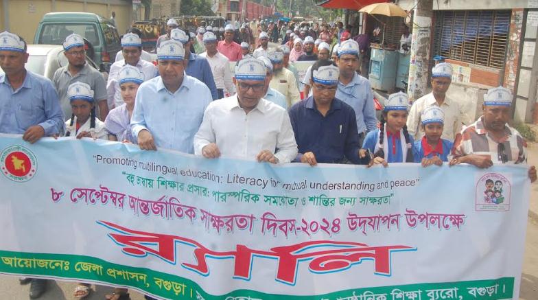 বিশ্বের অন্যান্য দেশের মতো বাংলাদেশেও বিভিন্ন কর্মসূচির মধ্য দিয়ে ৮ সেপ্টেম্বর যথাযথ মর্যাদায় পালিত হচ্ছে ‘আন্তর্জাতিক সাক্ষরতা দিবস-২০২৪’। ‘বহু ভাষায় শিক্ষার প্রসার পারস্পরিক সমঝোতা ও শান্তির জন্য সাক্ষরতা’ এই প্রতিপাদ্য বিষয়ের আলোকে বগুড়ায় আন্তর্জাতিক সাক্ষরতা দিবস পালন করা হয়েছে। রবিবার সকাল ৯টায় বগুড়া জেলা প্রশাসন আয়োজিত ও জেলা উপানুষ্ঠানিক শিক্ষা ব্যুরোর সহযোগিতায় দিবসটি উপলক্ষে এক বর্ণাঢ্য র্যালি শহরের প্রধান প্রধান সড়ক প্রদক্ষিণ করে।