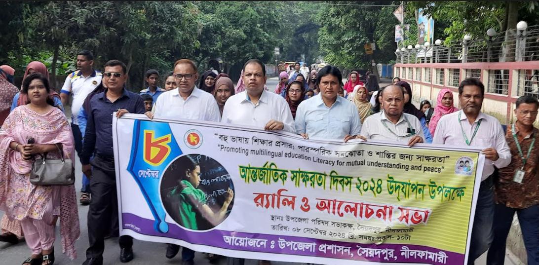 রবিবার সারাদেশের মতো নানা কর্মসূচির মধ্যদিয়ে নীলফামারীর সৈয়দপুর উপজেলায় আন্তর্জাতিক সাক্ষরতা দিবস-২০২৪ পালিত হয়েছে। দিবসটি উদ্যাপন উপলক্ষে সৈয়দপুর উপজেলা প্রশাসনের আয়োজনে বর্ণাঢ্য র্যালি ও এক আলোচনা সভা অনুষ্ঠিত হয়।