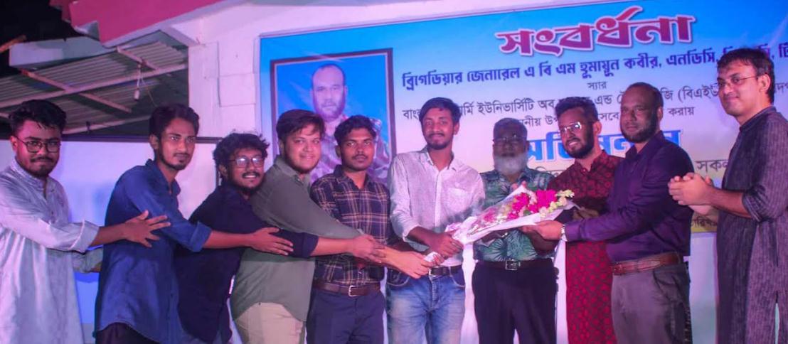 নীলফামারীর সৈয়দপুর সেনানিবাসে অবস্থিত বাংলাদেশ আর্মি বিজ্ঞান ও প্রযুক্তি বিশ^বিদ্যালয়ের (বাউস্ট) সদ্য যোগদানকারী উপাচার্য ব্রিগেডিয়ার জেনারেল এ বি এম হুমায়ুন কবীর, এনডিসি, পিএসসি, টিইকে সংবর্ধনা প্রদান করা হয়েছে। শুক্রবার সন্ধ্যায় বিশ্ববিদ্যালয়ের আটটি ক্লাবের সমন্বয়ে মুক্ত মঞ্চে ওই সংবর্ধনা অনুষ্ঠানের আয়োজন করা হয়। সংবর্ধনা অনুষ্ঠানের আয়োজক বিশ^বিদ্যালয়ের বিভিন্ন ক্লাবগুলো হচ্ছে, বাউস্ট কেরিয়া ক্লাব,বাউস্ট কালচারাল সোসাইটি,বাউস্ট স্পোর্টস ক্লাব,বাউস্ট ডিবেটিং সোসাইটি,বাউস্ট মেকানিক্স এন্ড রোবটিকস্ ক্লাব, বাউস্ট ফটোগ্রাফিক আই,বাউস্ট ক্যাড সোসাইটি এবং বাউস্ট ব্লাড ডোনেশন ক্লাব।