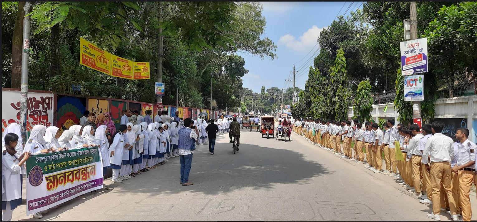 সৈয়দপুর সরকারি বিজ্ঞান কলেজে শিক্ষার্থীদের বিক্ষোভ ও মানববন্ধন