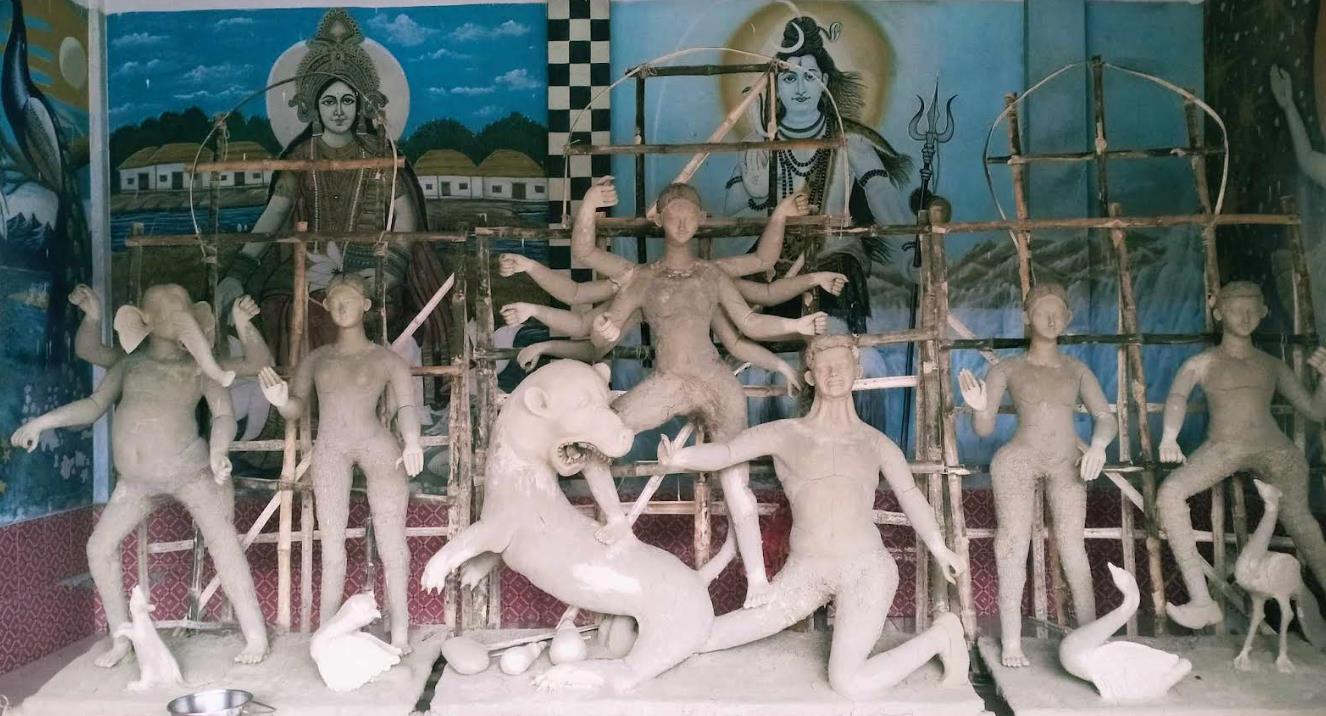 নন্দীগ্রামে ব্যস্ত সময় কাটছে প্রতিমা শিল্পীদের