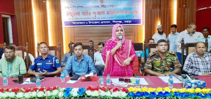 মঙ্গলবার বগুড়ার শিবগঞ্জ উপজেলা প্রশাসনের আয়োজনে আসন্ন শারদীয় দূর্গাপূজা উৎসবমূখর ও শান্তিপূর্ণ পরিবেশে উদ্যাপনের লক্ষ্যে উপজেলা আইন-শৃঙ্খলা কমিটির বিশেষ সভা উপজেলা নির্বাহী কর্মকর্তা তাহমিনা আক্তারের সভাপতিত্বে উপজেলা অডিটোরিয়ামে অনুষ্ঠিত হয়।