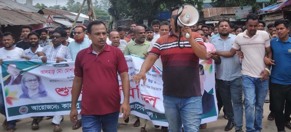 কাহালুতে স্বেচ্ছাসেবকদলের শুভেচ্ছা মিছিল
