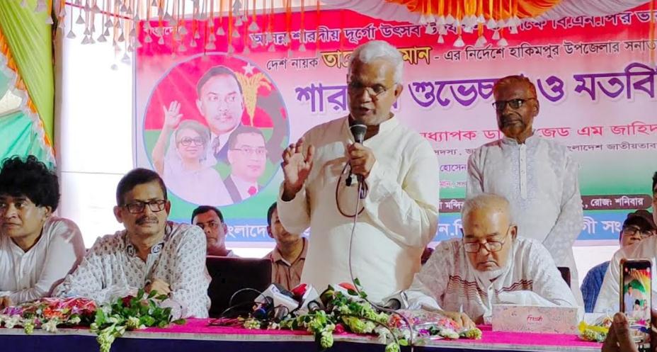 শনিবার (৫ অক্টোবর) সন্ধ্যায় দিনাজপুরের হিলির চন্ডিপুর দুর্গামন্দিরে উপজেলার ২১টি পুজামন্ডপের নেতৃবৃন্দের সঙ্গে শারদীয় শুভেচ্ছা ও মতবিনিময় সভায় বিএনপির স্থায়ী কমিটির সদস্য ও বিএনপির চেয়ারপারসন বেগম খালেদা জিয়ার ব্যক্তিগত চিকিৎসক অধ্যাপক ডাঃ এ জেড এম জাহিদ হোসেন প্রধান অতিথির বক্তব্যে এসব কথা বলেন।