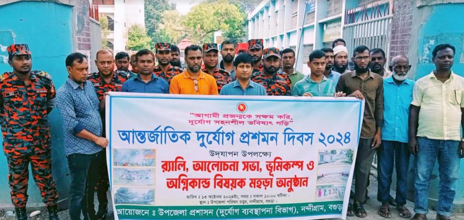 'আগামী প্রজন্মকে সক্ষম করি দুর্যোগ সহনশীল ভবিষ্যৎ গড়ি' এই প্রতিপাদ্যে বগুড়ার নন্দীগ্রামে নানা আয়োজনে আন্তর্জাতিক দুর্যোগ প্রশমন দিবস পালিত হয়েছে।