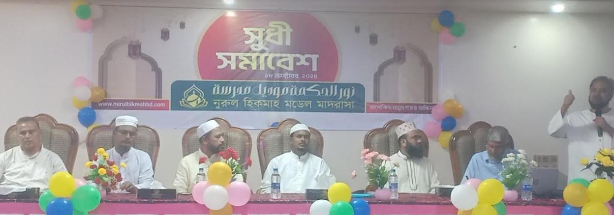 নীলফামারীর সৈয়দপুরে নুরুল হিকমাহ মডেল মাদ্রাসা স্থাপিত হয়েছে। আলোকিত মানুষ গড়ার আঙ্গিনা অঙ্গীকার নিয়ে মাদ্রাসাটির পরিচালনা পদ্ধতি ও কার্যক্রম সম্পর্কে অবহিত করার লক্ষ্যে এক সুধী সমাবেশ অনুষ্ঠিত হয়েছে। গত শুক্রবার (১৮ অক্টোবর) বিকেলে প্রতিষ্ঠানের উদ্যোগে শহরের পার্বতীপুর সড়কের ড্রিমপ্লাস রিসোর্টে ও হোটেলের হলরুমে ওই সুধী সমাবেশের আয়োজন করা হয়।