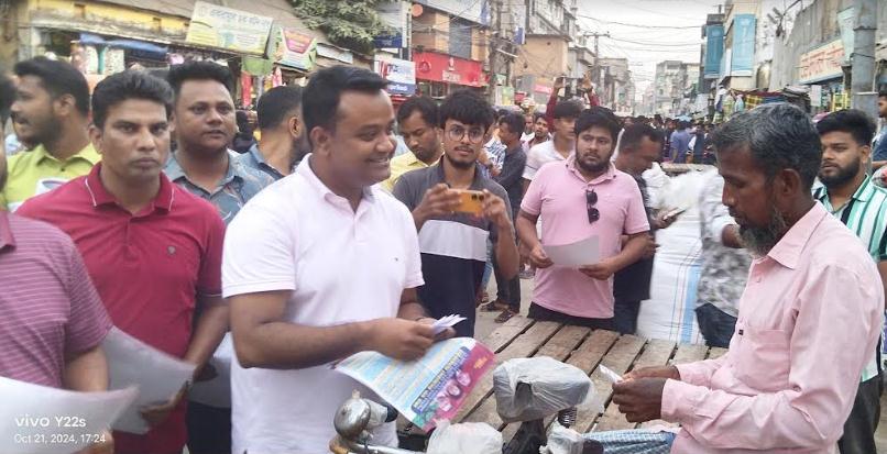 পরে শহরের শহীদ ডা. জিকরুল হক সড়ক, মুক্তিযোদ্ধা শহীদ আব্দুল মজিদ সড়কের কাপড় মার্কেট, নিউ কথ মার্কেট এলাকায় লিফলেট বিতরণ করা হয়েছে।