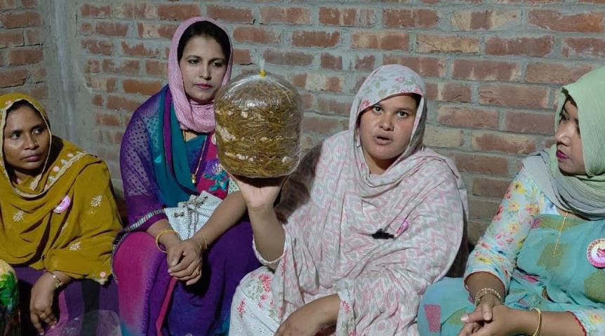 নারীদের স্বাবলম্বী করতে হিলিতে মাশরুম চাষের প্রশিক্ষণ দিচ্ছেন শাপলা শারমিন