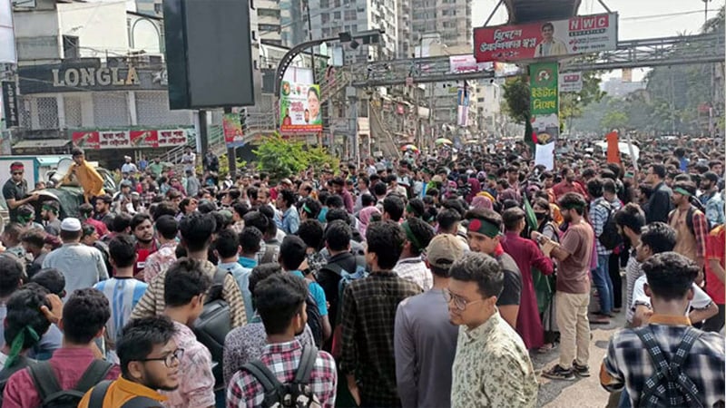 সাত কলেজের শিক্ষার্থীদের সায়েন্সল্যাব মোড় অবরোধ