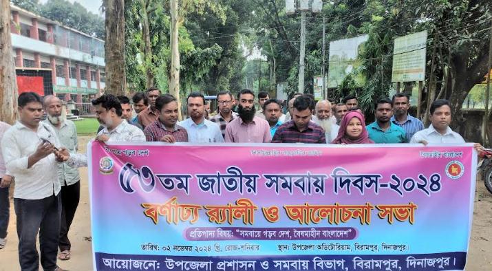 "সমবায়ে গড়ব দেশ,বৈষম্যহীন বাংলাদেশ" স্লোগানকে সামনে রেখে দিনাজপুর জেলার বিরামপুরে ৫৩-তম জাতীয় সমবায় দিবস উপলে র্যালী ও আলোচনা সভা অনুষ্ঠিত হয়েছে।