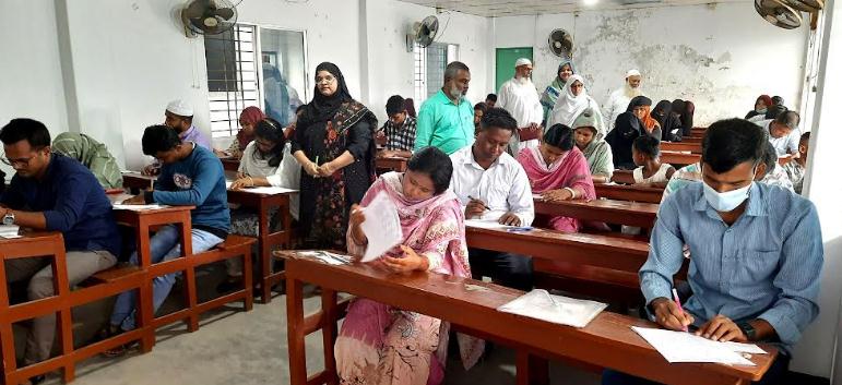 বেলা ১১টা থেকে ১২টা পর্যন্ত এক ঘন্টাব্যাপী ৬০ নম্বরের লিখিত পরীক্ষা গ্রহন করা হয়েছে। লিখিত পরীক্ষায় নম্বর বন্টন ছিল বাংলা, ইংরেজি, সাধারণ জ্ঞান ও বিজ্ঞান বিষয়ে প্রতিটিতে ১৫ নম্বর করে। এছাড়াও মৌখিক পরীক্ষা ৩০ ও সনদ মূল্যায়ন ১০ নম্বর রয়েছে।