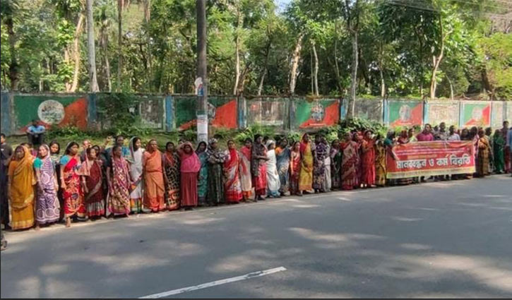 এর অংশ হিসেবে সোমবার সিলেটে লাক্কাতুরা চা বাগানের সামনে আম্বরখানা-এয়ারপোর্ট সড়কে মানববন্ধন ও বিক্ষোভ করেন ন্যাশনাল টি কোম্পানির লাক্কাতুরা, কেওয়াচড়া, দলদলি চা বাগানের কয়েকশ শ্রমিক। তাদের দাবি মজুরি না পেয়ে মানবেতর জীবন যাপন করতে হচ্ছে তাদের।