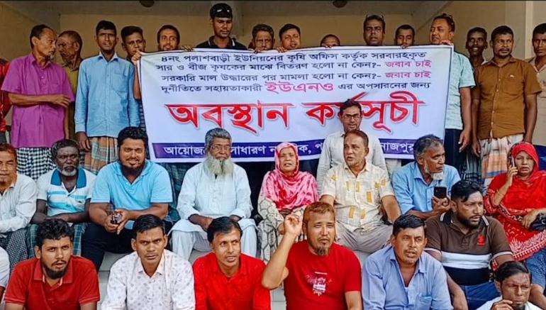 অবস্হান কর্মসূচীতে সাধারণ নাগরিককেরা সরবারহকৃত সার ও বীজ কৃষকের মাঝে বিতরণ হলো না কেন,সরকারি মাল উদ্ধারের পর মামলা হলো না কেন এর জবাব চেয়ে,দূর্নীতিতে সহায়তাকারী ইউএনও এর অপসারনের দাবি করেন। পরে সেনাবাহিনী ও মডেল থানা পুলিশের সহায়তায় কর্মসূচির পরিবেশ শান্ত হয়।