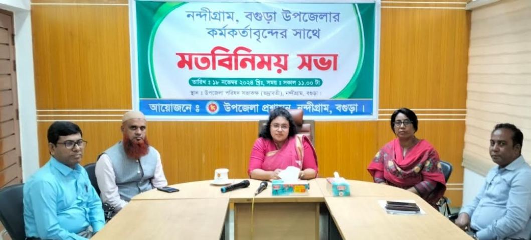 নন্দীগ্রামে জনপ্রতিনিধি সহ উপজেলার বিভিন্ন কর্মকর্তাবৃন্দের সাথে মতবিনিময় করেছে নন্দীগ্রাম উপজেলা নির্বাহী অফিসার মোসাঃ লায়লা আঞ্জুমান বানু।