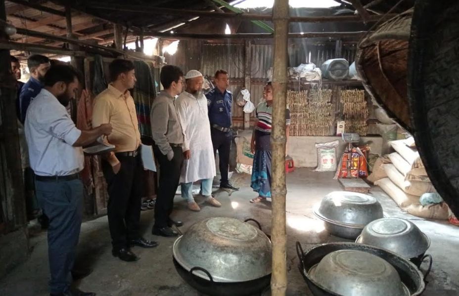 সেসময় তিনি ভ্রাম্যমাণ আদালত পরিচালনা করে অস্বাস্থ্যকর পরিবেশে মিষ্টি তৈরি করার অপরাধে ভোক্তা অধিকার সংরক্ষণ আইনে ভাই বোন মিষ্টান্ন ভান্ডারের মালিক জনাব আলীকে এক হাজার টাকা ও সাকিব হোটেল এন্ড মিষ্টান্ন ভান্ডারের মালিক শাজাহান আলমকে এক হাজার টাকা জরিমানা করেন।