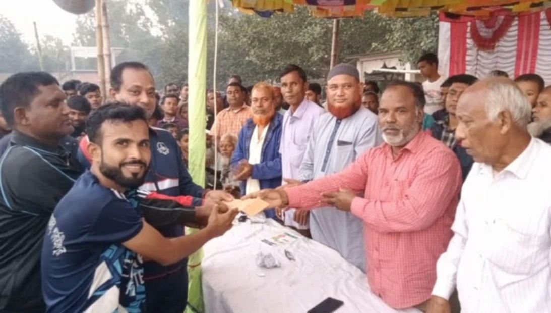 খেলা শেষে রানার্সআপ ও চ্যাম্পিয়ন দলের হাতে পুরস্কার তুলে দেন অতিথিবৃন্দগন।