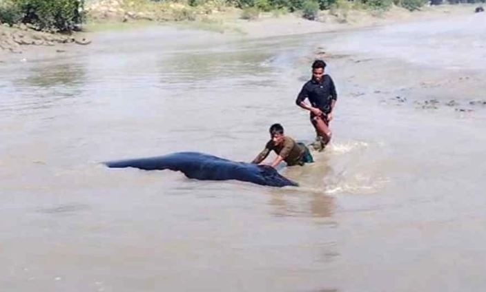 নোয়াখালীর ডুবোচরে ভেসে এলো বিশালাকৃতির তিমি