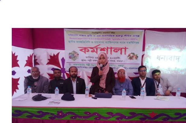 মতবিনিময় কর্মশালায় সভাপতিত্ব করেন পিইউপি এর প্রধান সমন্বয়কারী শেখ মোঃ আবু হাসানাত। প্রধান অতিথি হিসেবে অংশ নেন বগুড়া সদর উপজেলা কৃষি অফিসার ইসমত জাহান। প্রধান অতিথির বক্তব্যে তিনি বলেন, রাসায়নিক সার ও কীটনাশকের বদলে ব্যবহার হচ্ছে জৈব সার, বীজ, মালচিং পেপার, ফেরোমন ট্র্যাপ, নেট, হলুদ আঠালো ফাঁদ। এটি একটি মহৎ উদ্যোগ, এ উদ্যোগের ফলে দেশের মানুষ বিষমুক্ত খাবার খেতে পারবে। তাই দিন দিন বিষমুক্ত সবজির জনপ্রিয়তা বাড়ছে, জৈব সারে চাষের পরিধি বড় হচ্ছে। শাকসবজি ও ফলমূল উৎপাদন অতিরিক্ত রাসনায়নিক সার ও কীটনাশক ব্যবহারের ফলে মাটি, পানি এবং বায়ু দূষণ হয়। প্রাকৃতিক উপায়ে উৎপাদিত শাকসবজি ও ফলমুলে ভিটামিন, প্রোটিন, ফাইবার এবং খনিজ পদার্থের পরিমাণ বেশি থাকে। ফলে তা ক্যান্সার, হৃদরোগ ও ডায়াবেটিস সহ নানা রোগের ঝুঁকি কমায়। বিষমুক্ত নিরাপদ সবজি ও ফলমূল স্বাস্থ্যের জন্য অত্যন্ত জরুরী। পরিবেশবান্ধব কৃষি কেবলমাত্র পরিবেশ সংরক্ষণ নয়, বরং অর্থনৈতিক দৃষ্টিকোণ থেকে টেকসই উন্নয়ন নিশ্চিত করে। এ ধরণের কৃষি পদ্ধতির প্রসার কৃষিক্ষেত্রে নতুন দিগন্ত উন্মোচন করবে, যা কৃষকদের জন্য অর্থনৈতিক সাফল্য ও সমাজের জন্য স্বাস্থ্যসম্মত পণ্য সরবরাহ করবে।
