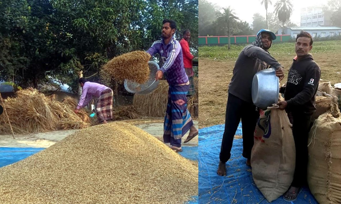 আদমদীঘিতে আমন ধান ফলনে কম হলেও দামে খুশি কৃষক