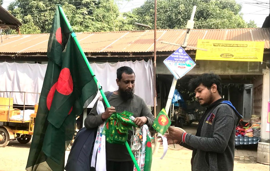 আত্রাইয়ে বিজয়ের নিশান হাতে লাল সবুজের ফেরিওয়ালা