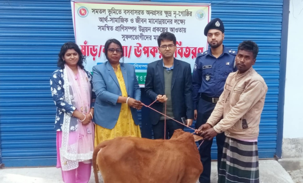 উল্লেখ্য, প্রান্তিক ক্ষুদ্র ও নৃ-গোষ্টীদের মাঝে বিনামূল্যে ৩৪ টি ষাঁড় ও ৩৪ টি বকনা প্রদান করা হয়।