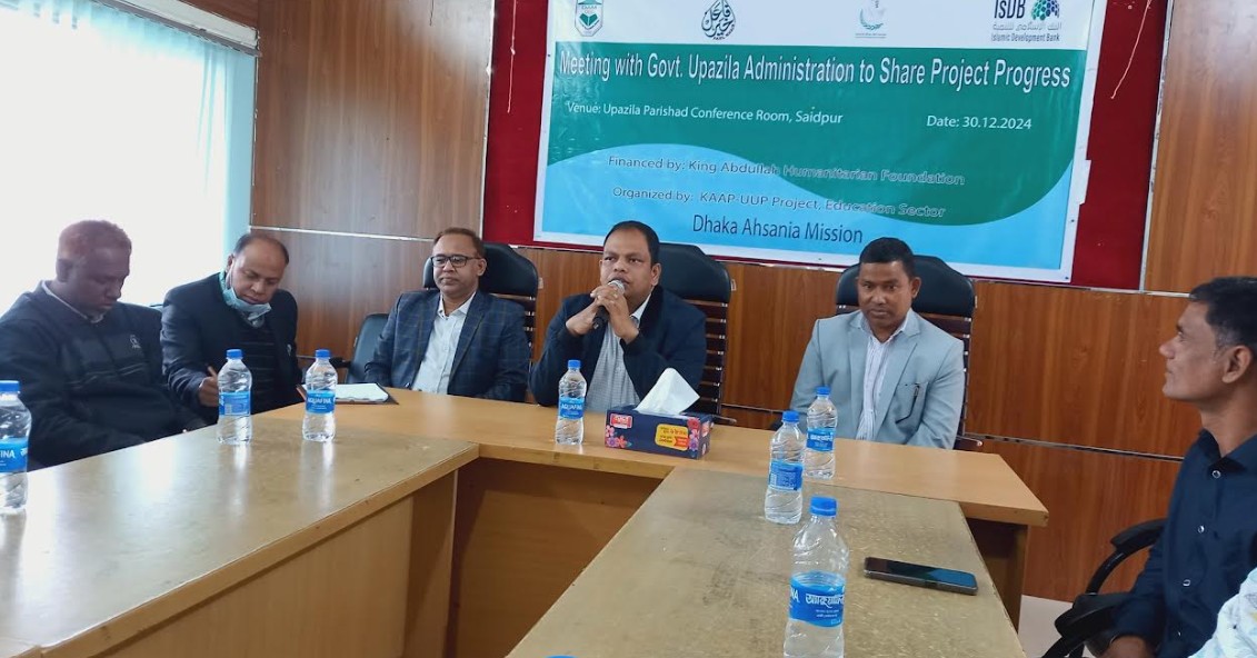 সভায় সভাপতিত্ব করেন প্রকল্পের সৈয়দপুর ফিল্ড অফিসের ফিল্ড ম্যানেজার মো. আসাদুল্লাহ। সভার শুরুতেই প্রকল্পের ফিল্ড ম্যানেজার মো. আসাদুল্লাহ ঢাকা আহছানিয়া মিশনের কার্যক্রমসহ সংস্থার এডুকেশন সেক্টরের আওতায় কিং আব্দুল্লাহ হিউম্যানিটেরিয়ান ফাউন্ডেশন এর অর্থায়নে সৈয়দপুর পৌরসভা এলাকায় পরিচালিত কাপ-আপ প্রকল্পের ২০২৪ সালের অগ্রগতি ও আগামীর পরিকল্পনার পাওয়ার প্লান প্রতিবেদন উপস্থাপন করেন।