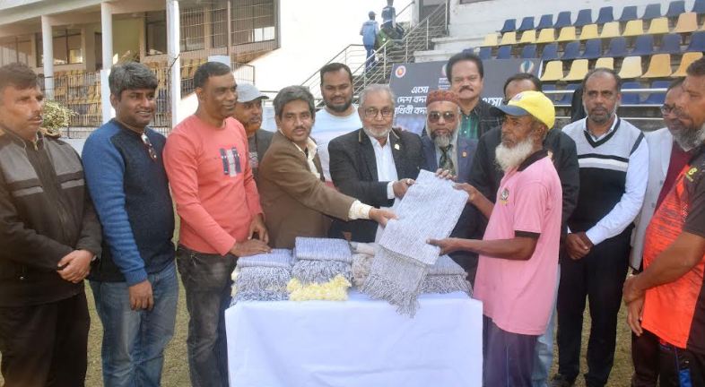 বগুড়ায় স্পোর্টস রিপোর্টার্সের স্টেডিয়ামের কর্মচারীদের মাঝে শীতবস্ত্র উপহার প্রদান
