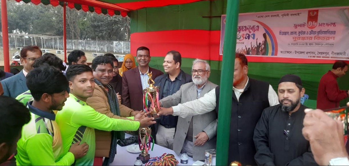 রবিবার বিকেলে সৈয়দপুর স্টেডিয়ামে ওই সব প্রতিযোগিতার পুরস্কার বিতরণী অনুষ্ঠান অনুষ্ঠিত হয়েছে। এতে প্রধান অতিথি ছিলেন সৈয়দপুর রাজনৈতিক জেলা বিএনপির সভাপতি আলহাজ¦ অধ্যক্ষ মো. আব্দুল গফুর সরকার এবং বিশেষ অতিথি ছিলেন বিএনপি সৈয়দপুর রাজনৈতিক জেলা শাখার সাধারণ সম্পাদক শাহীন আকতার শাহীন, জামায়াতে ইসলামী সৈয়দপুর শাখার আমীর মাওলানা হাফেজ মো. আব্দুল মুন্তাকিম ও সাধারণ সম্পাদক মো. মাজহারুল ইসলাম।