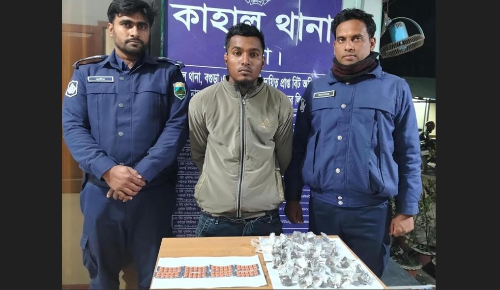 কাহালুতে ট্যাপেন্টাডল ট্যাবলেট ও গাঁজাসহ মাদক ব্যবসায়ী গ্রেফতার