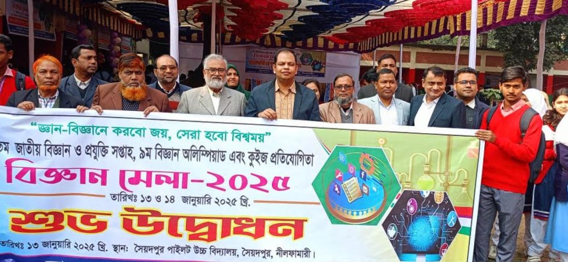 নীলফামারীর সৈয়দপুরে ৪৬তম জাতীয় বিজ্ঞান ও প্রযুক্তি সপ্তাহ-২০২৫ শুরু হয়েছে। এ উপলক্ষে সোমবার সকাল ১০টায় দুই দিনব্যাপী বিজ্ঞান মেলার উদ্বোধন করা হয়। জাতীয় বিজ্ঞান ও প্রযুক্তি যাদুঘরের তত্ত্বাবধানে এবং বিজ্ঞান ও প্রযুক্তি মন্ত্রণালয়ের পৃষ্ঠপোষকতায় সৈয়দপুর উপজেলা প্রশাসন ওই বিজ্ঞান মেলার আয়োজন করেছে।